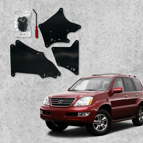 Your GX is built for adventure and ensures you always get where you need to go. Take care of your GX with our durable splash guards & wheel well liners. Made in the USA, backed by warranty, and custom fit to your specific model. Splash Guards are crucial to protect your engine bay and frame from road debris, salt, and water.